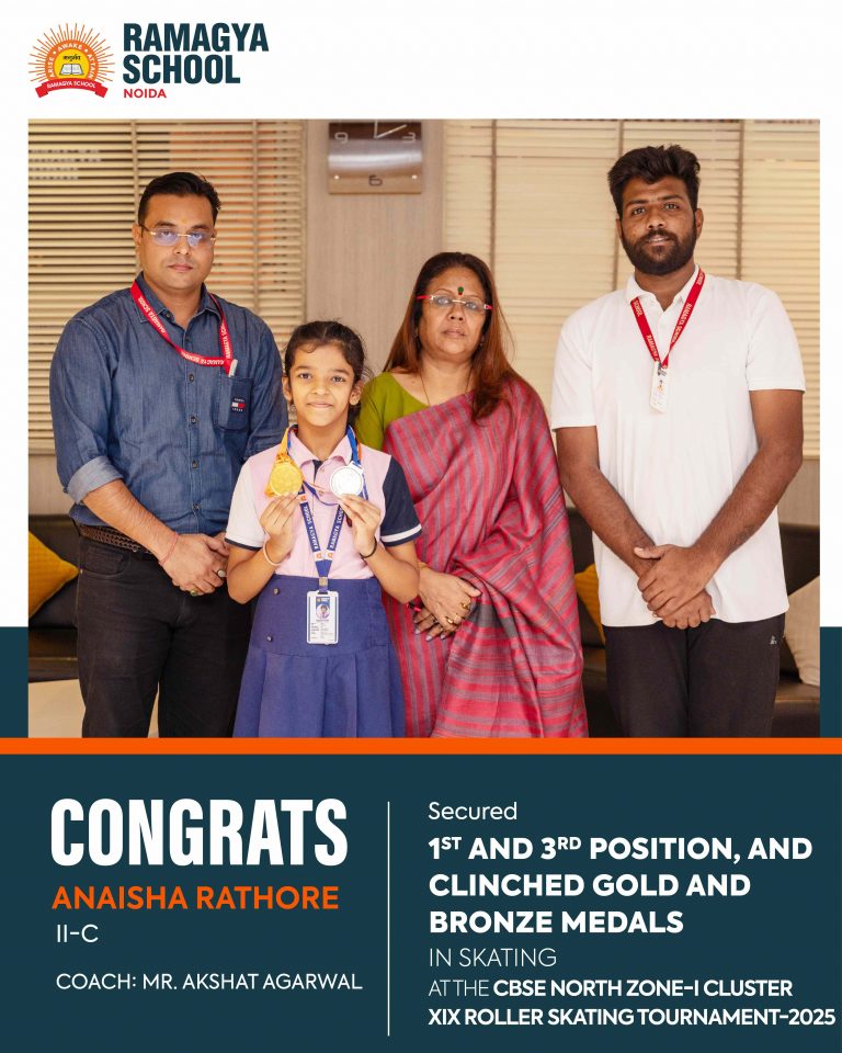 Anaisha Rathore Wins Gold and Silver at the CBSE North Zone-I Cluster XIX Roller Skating Tournament-2025