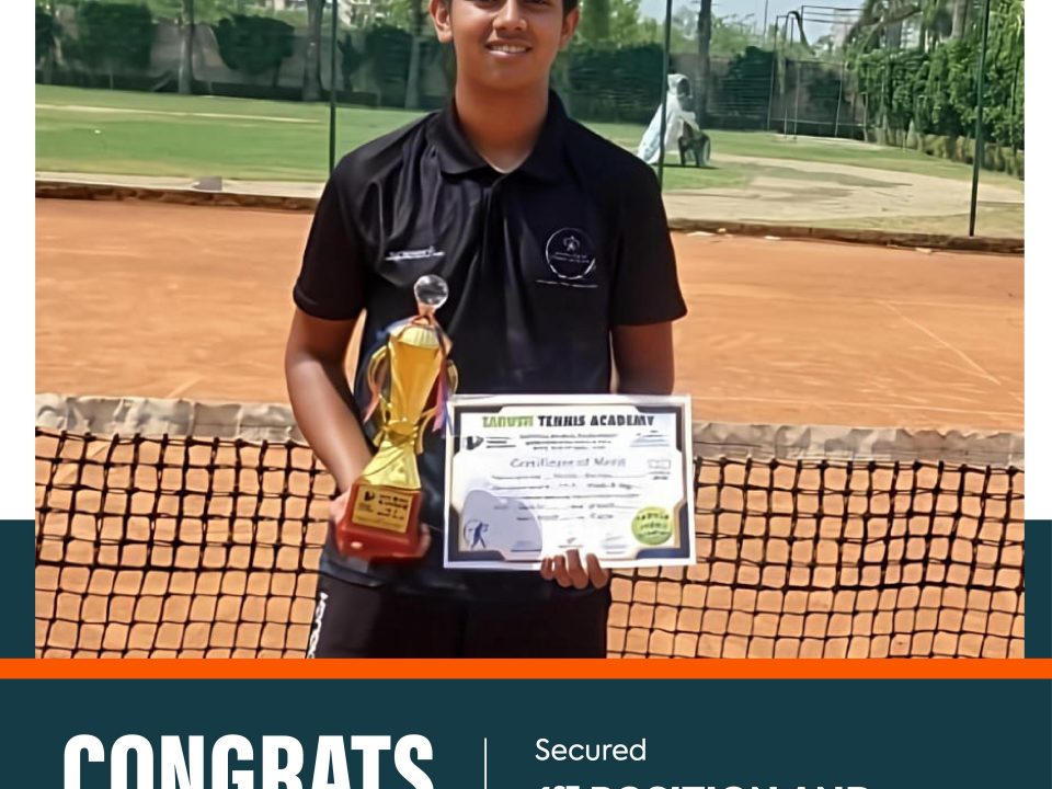 Aariv Gupta from Class 7-F has achieved a great milestone by winning the Doubles title in the AITA National Series for the Under-12 category. Held in Jassowal, this national-level tournament saw Aariv competing against some of the best young tennis players from across the country. With focus, determination, and smart gameplay, he clinched the Gold medal, making this a proud moment for his family, friends, and mentors.