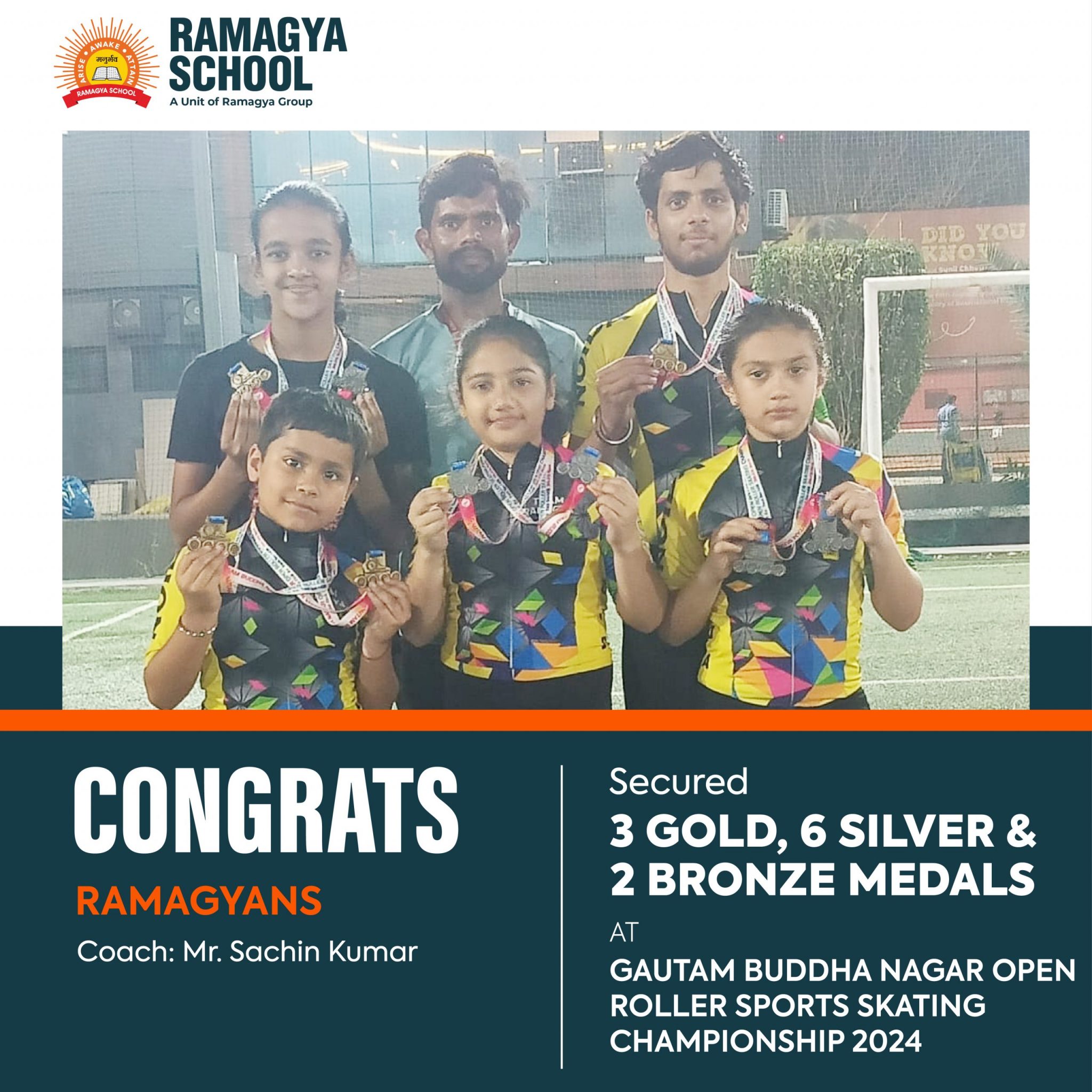 Congratulations to our coach Mr. Sachin Kumar and students of class I to XII to achieve 3 Gold, 6 Silver and 2 Bronze Medals in Skating at The Gautam Buddha Nagar Open Roller Sports Skating Championship 2024.