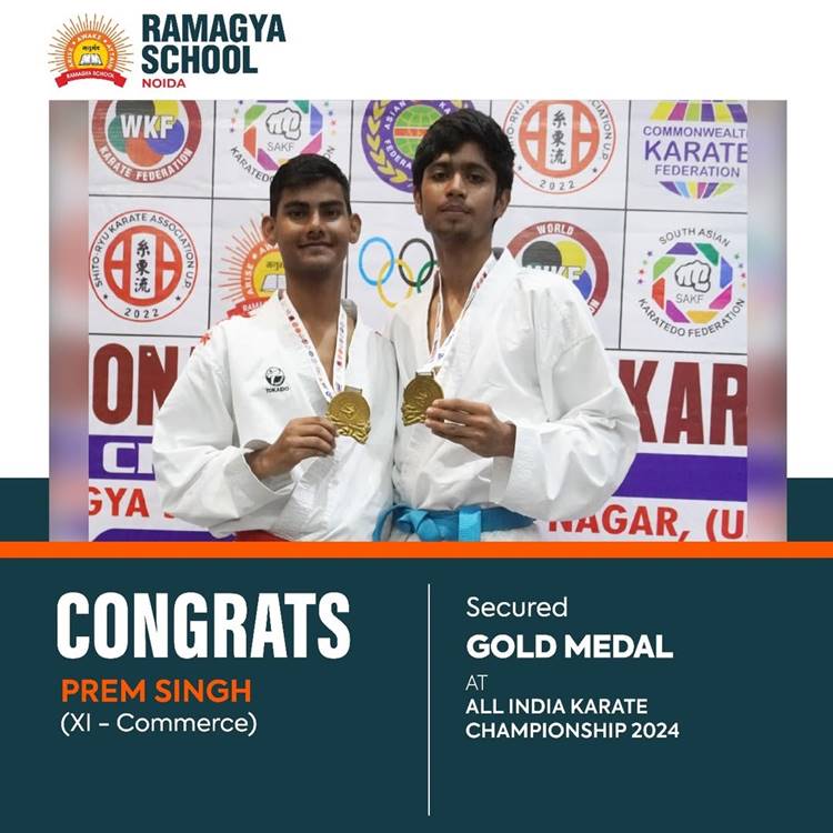 We are delighted to share that Prem Singh, a student from XI-C at Ramagya School, has secured a Gold Medal at the All India Karate Championship 2024. This incredible achievement highlights his dedication, hard work, and passion for karate. His commitment to his training and unwavering focus have set a benchmark for all students at Ramagya School.