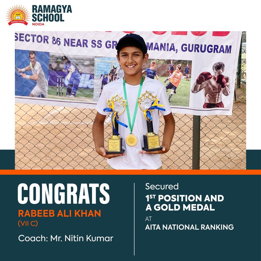 We are proud to announce that Rabeeb Ali Khan from Class 7C has secured the 1st position and won a Gold medal in the AITA National Ranking Lawn Tennis Championship. Competing in the U-12 Boys category for both singles and doubles, Rabeeb demonstrated outstanding skill and determination.